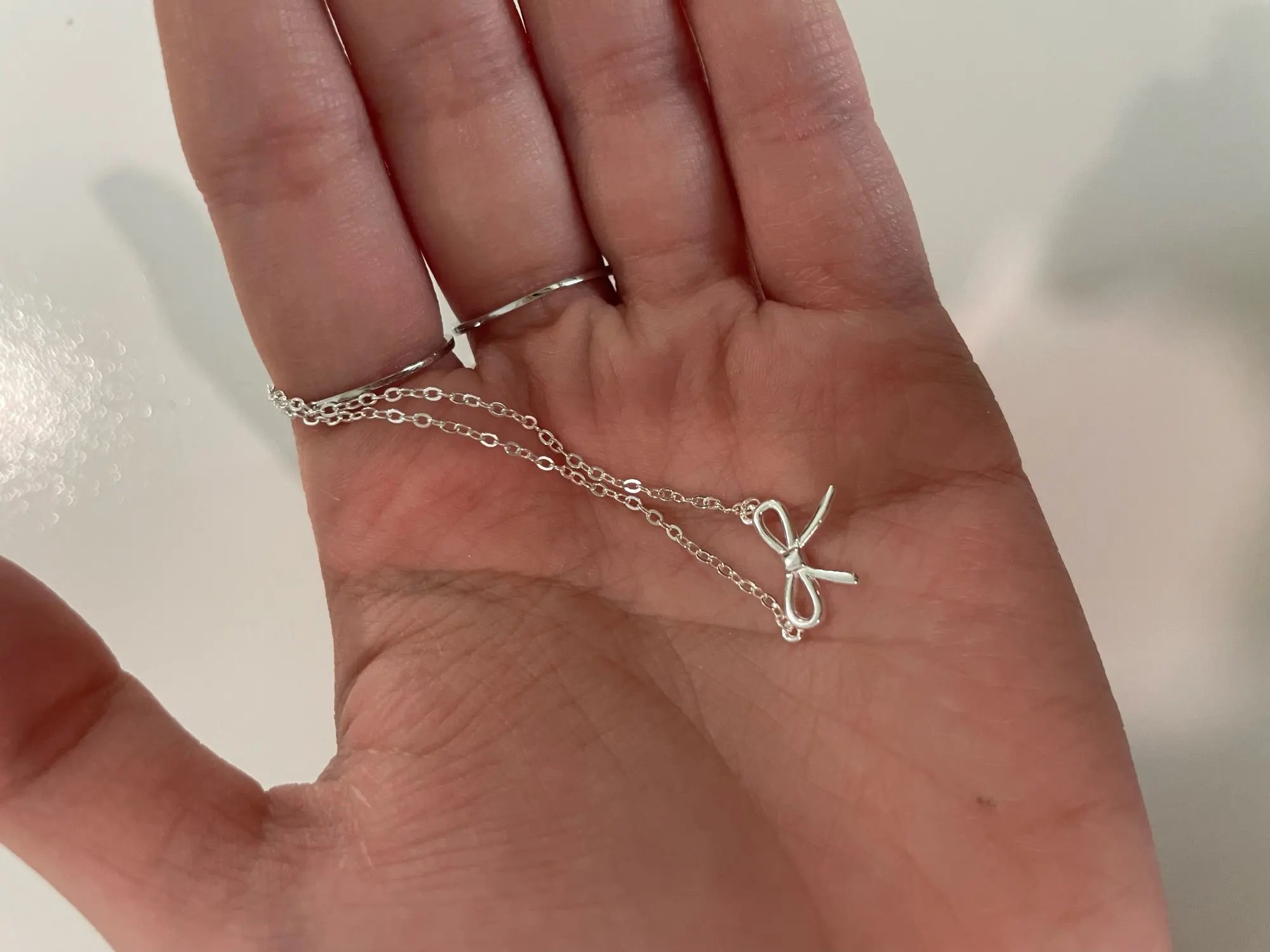 A graceful bowknot pendant on a luminous sterling silver chain.