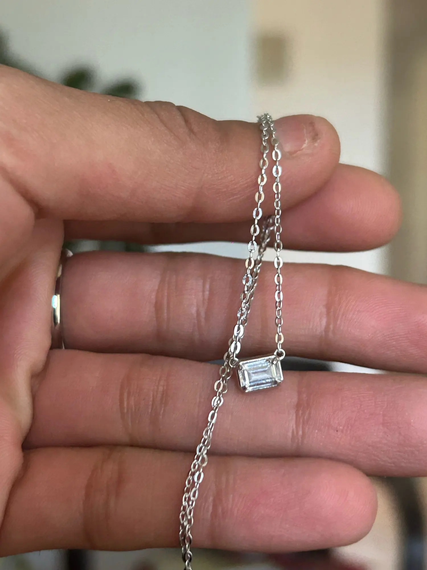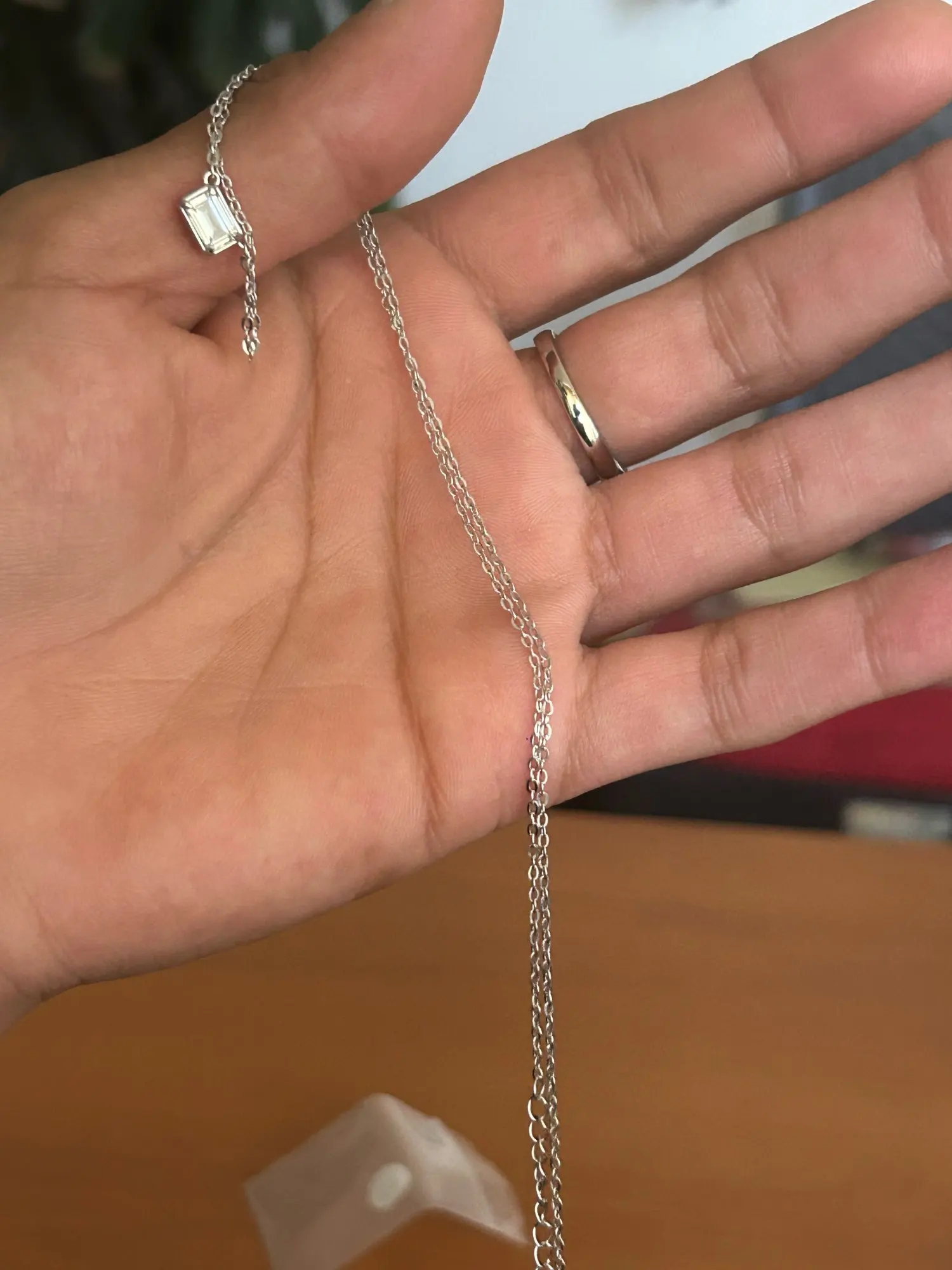This necklace features a delicate emerald-cut rectangle CZ pendant set in genuine 925 sterling silver on a sleek link chain. Subtle yet elegant, it’s the ideal piece for weddings, gifts, or adding a polished finish to your everyday style.