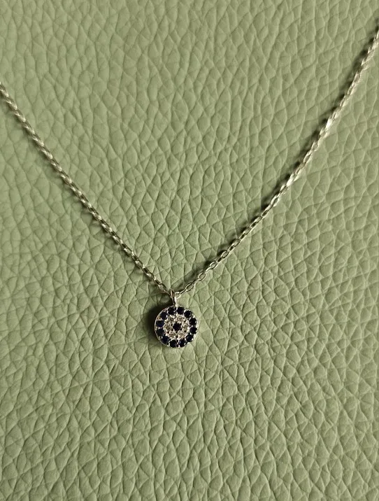 A luminous evil eye necklace crafted in refined sterling silver.