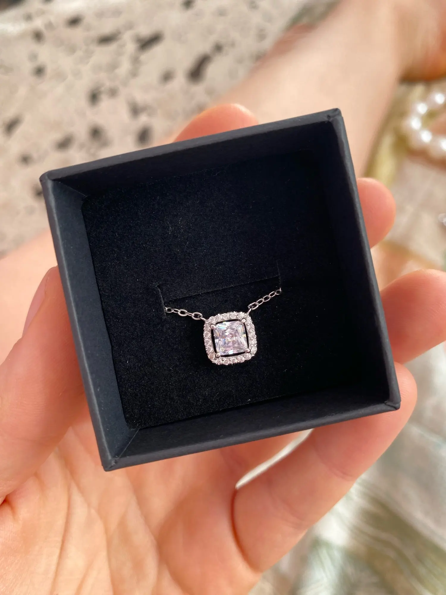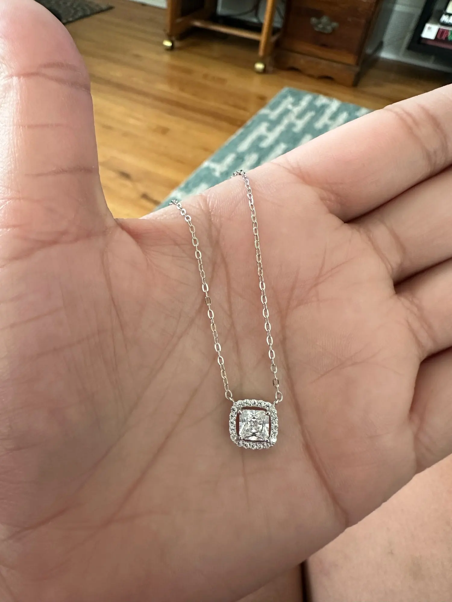 ✓ Pendant necklace detail on a sterling silver chain