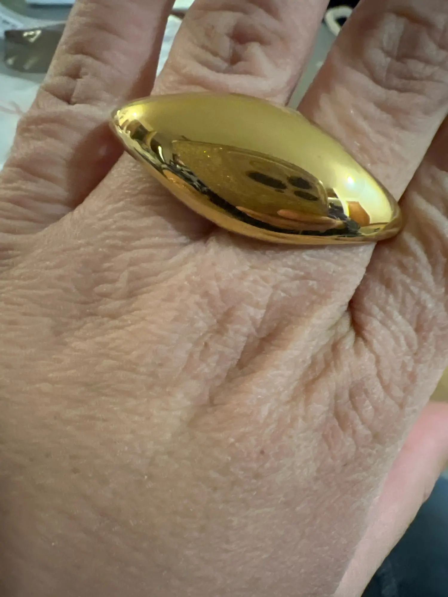 A distinctive ring designed to elevate fashion jewelry collections with its striking silhouette and golden elegance.