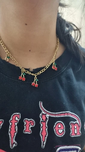 This matching necklace and bracelet set features a delicate cherry drop design adorned with cubic zirconia, all plated with 18K gold over durable stainless steel. Waterproof and eye-catching, it’s perfect for adding glamour to evening looks or casual styles.