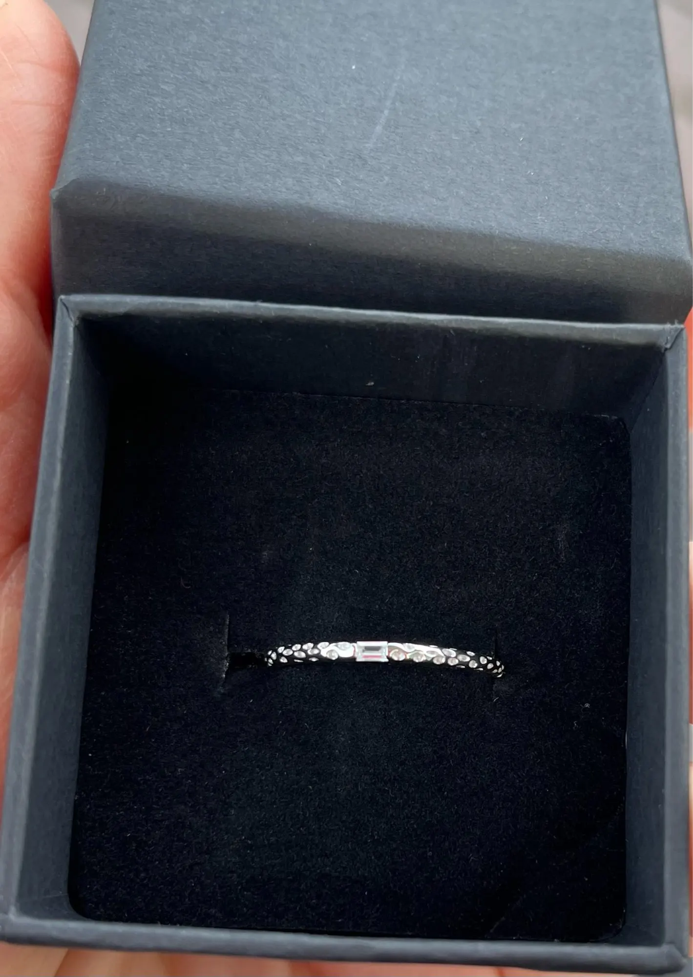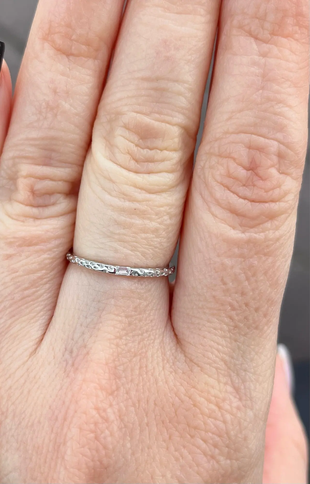 ✓ Silver ring profile that layers with a sterling ring stack