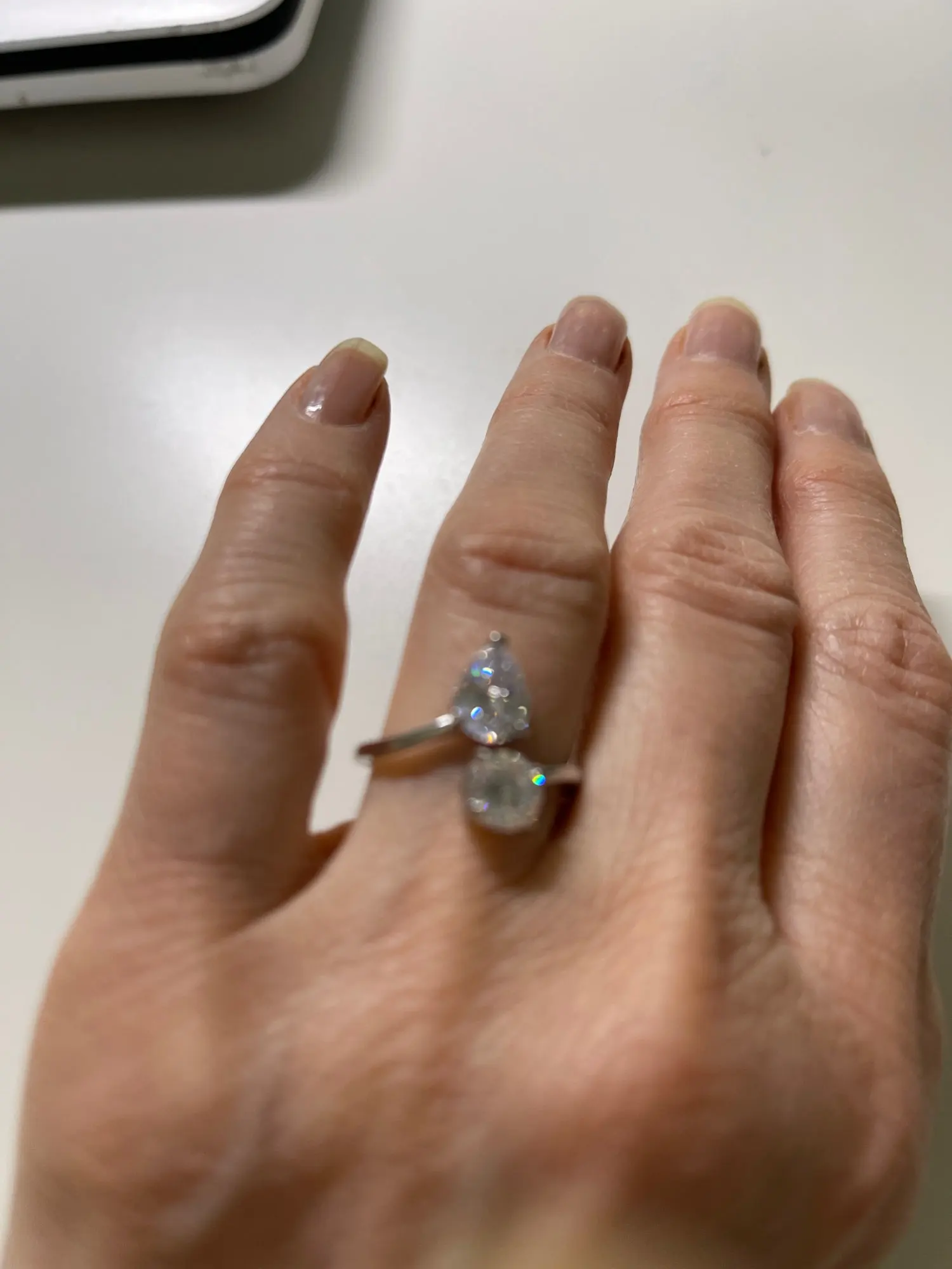 ✓ Interleaving clear cubic zirconia stones in round and teardrop shapes
