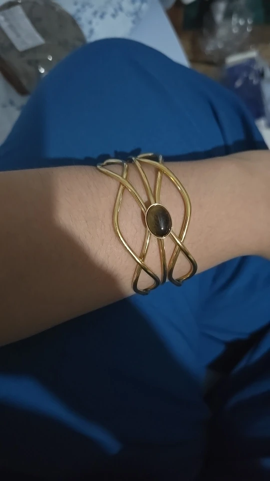 This wide open cuff bracelet is crafted from stainless steel with an 18K gold plated finish for lasting brilliance. Designed as a statement accessory, it brings gold jewelry elegance and durable strength, making it a versatile bracelet for gold lovers.