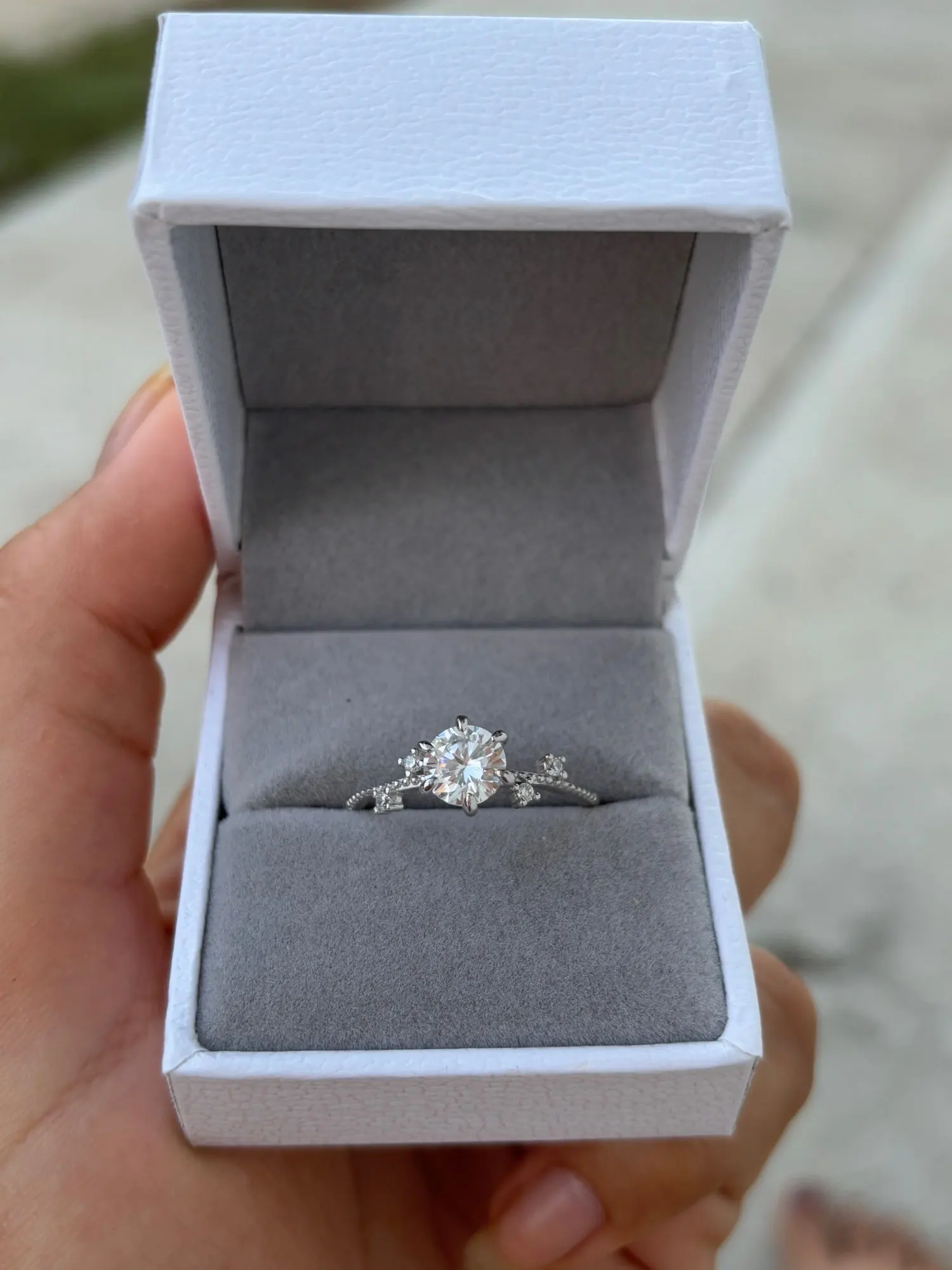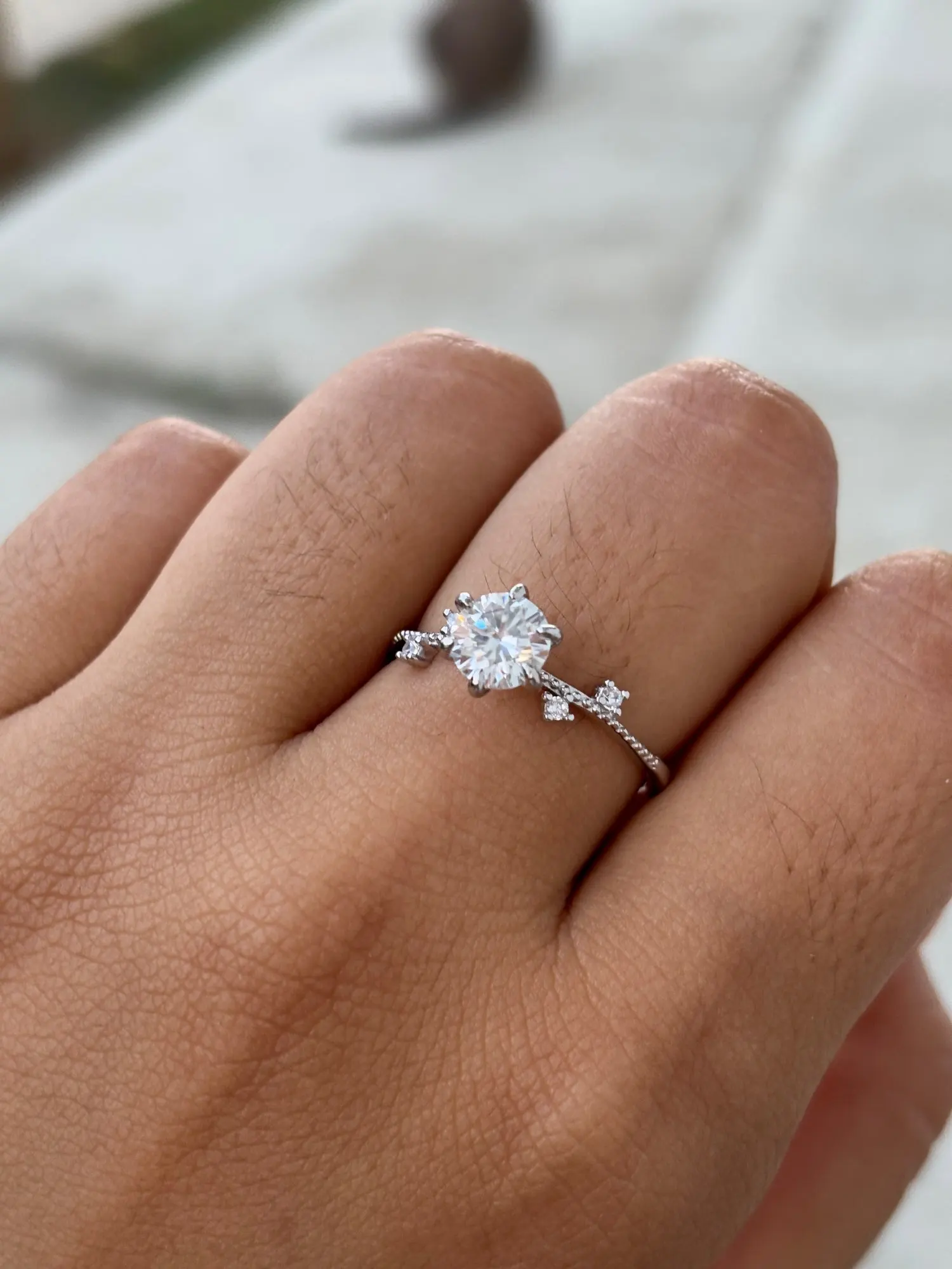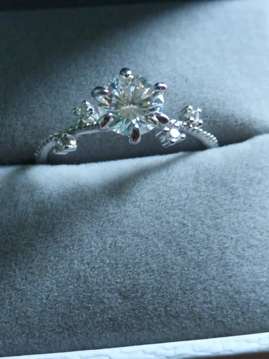 This silver ring showcases a brilliant moissanite diamond in a refined six claw floral setting. The ring moissanite profile offers graceful proportions that flatter every hand. Comfortable for daily wear as a ring with size friendly design, it pairs beautifully with moissanite jewelry rings. For accuracy, simply confirm ring size from ring.