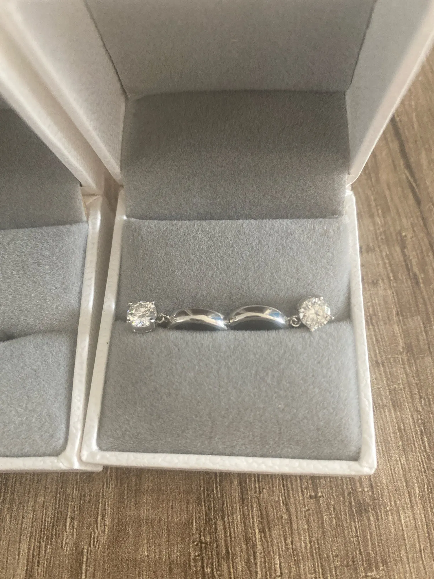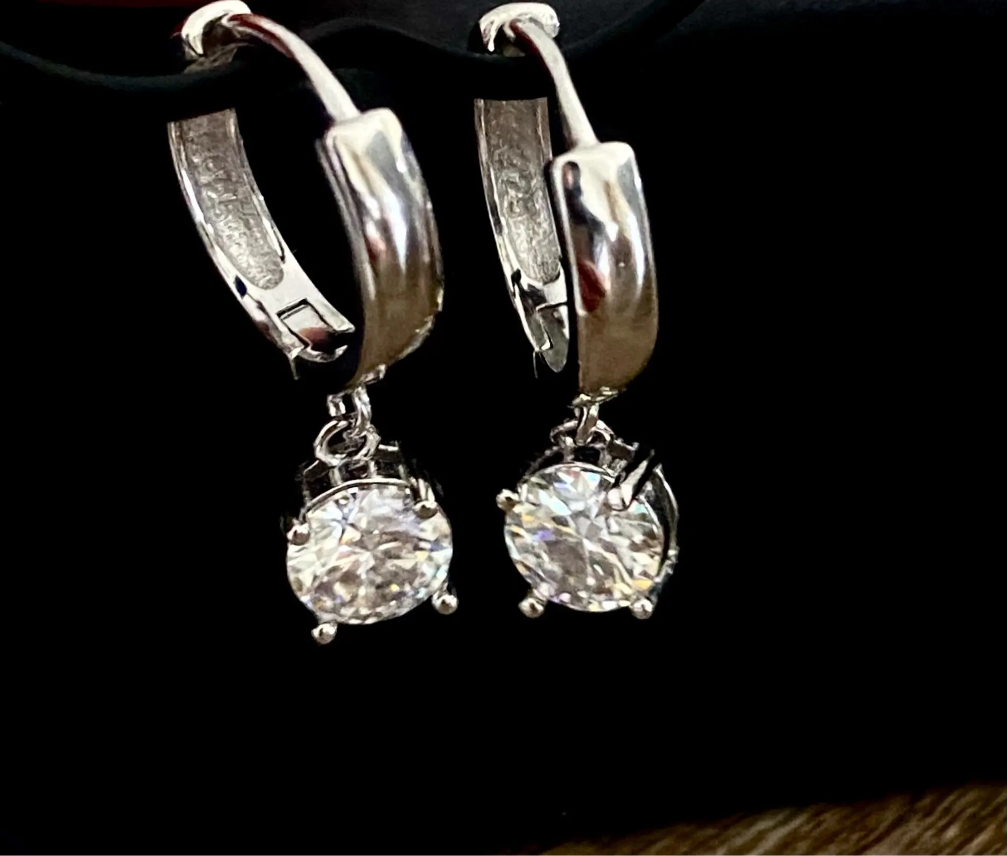 These ear rings pair brilliant moissanite diamond sparkle with a polished sterling silver finish. The sleek hoop earrings style moves gracefully, while the refined setting highlights moissanite jewelry elegance. Crafted as sterling silver earrings, the design delivers lasting shine in 925 sterling silver and silver hoop earrings ease.