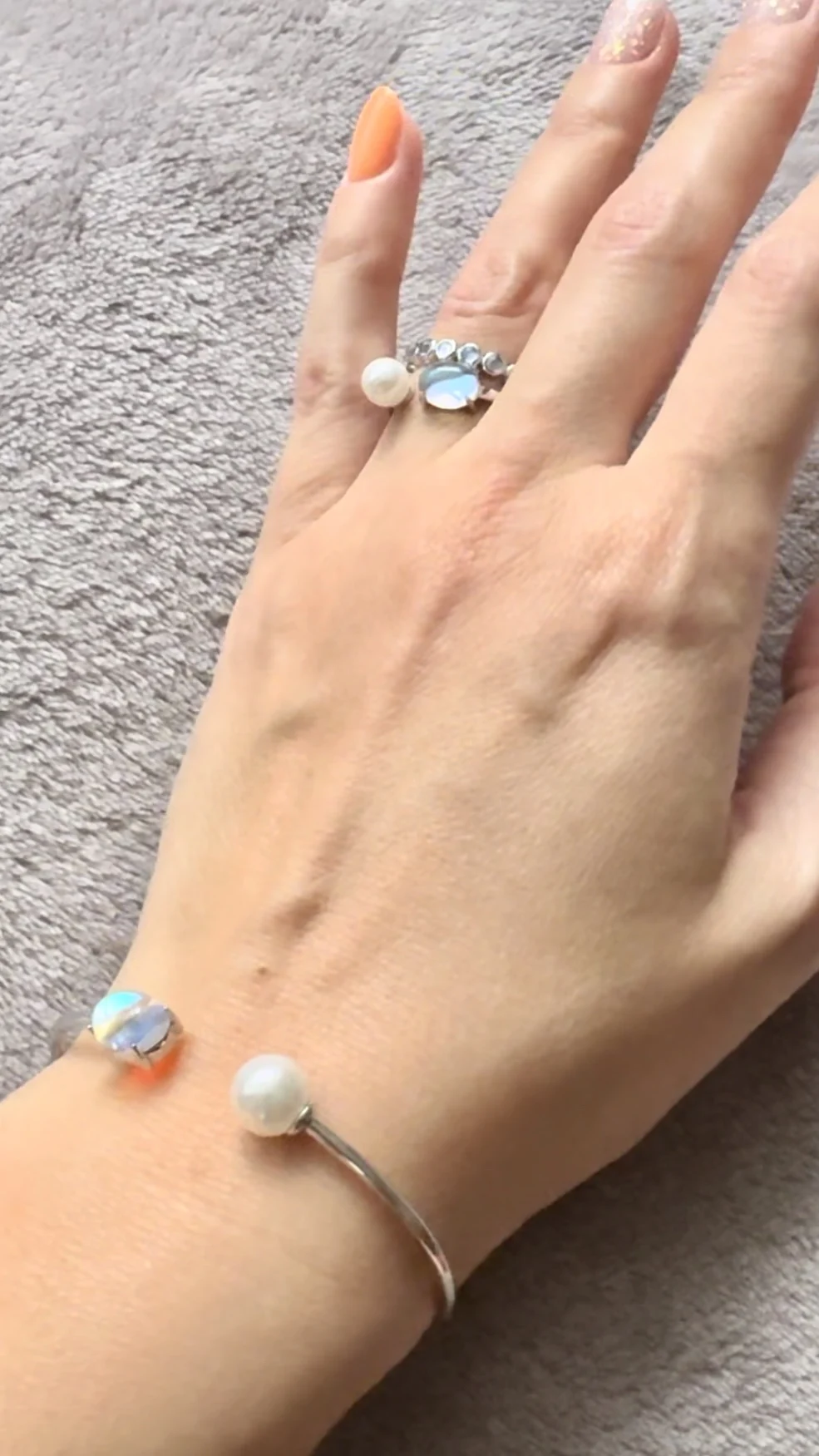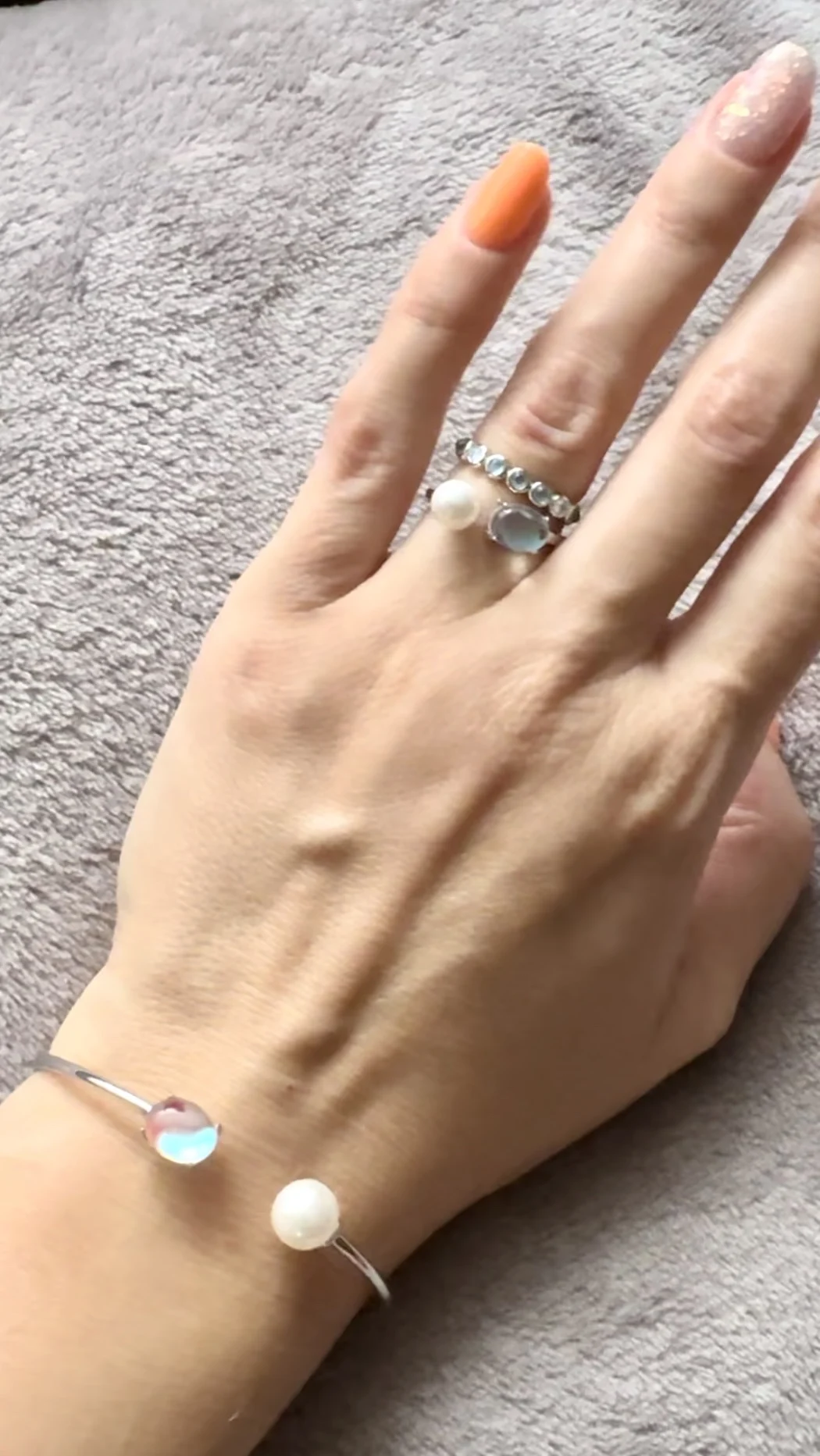 This adjustable oval bracelet blends shimmering crystals, lustrous pearls, and soft moonstone details on a 925 sterling silver chain. Designed with flexibility and style in mind, this piece gives bracelet charm with natural beauty. Ideal for those seeking subtle sparkle, oceanic tones, or symbolic gemstone energy.