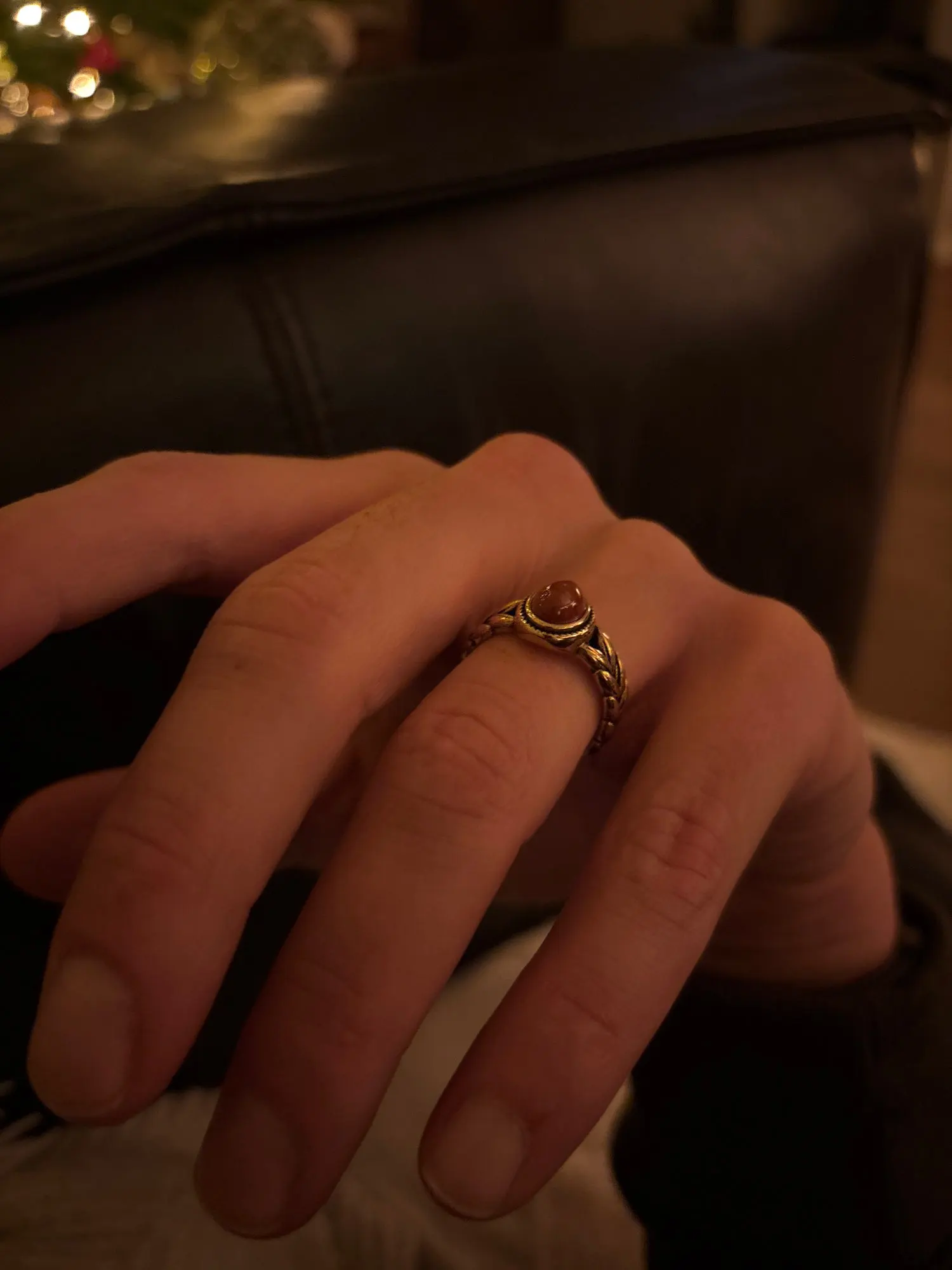 A vintage ring with refined glow and graceful comfort.