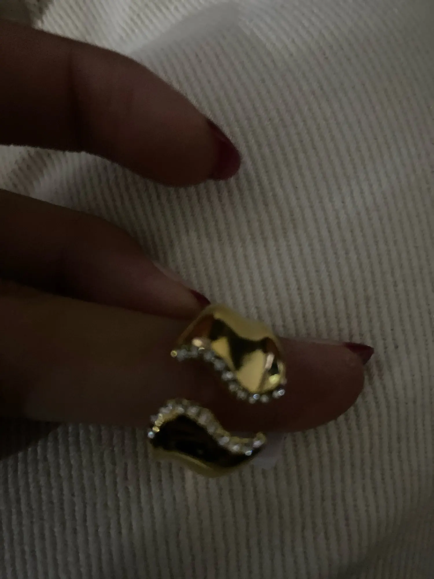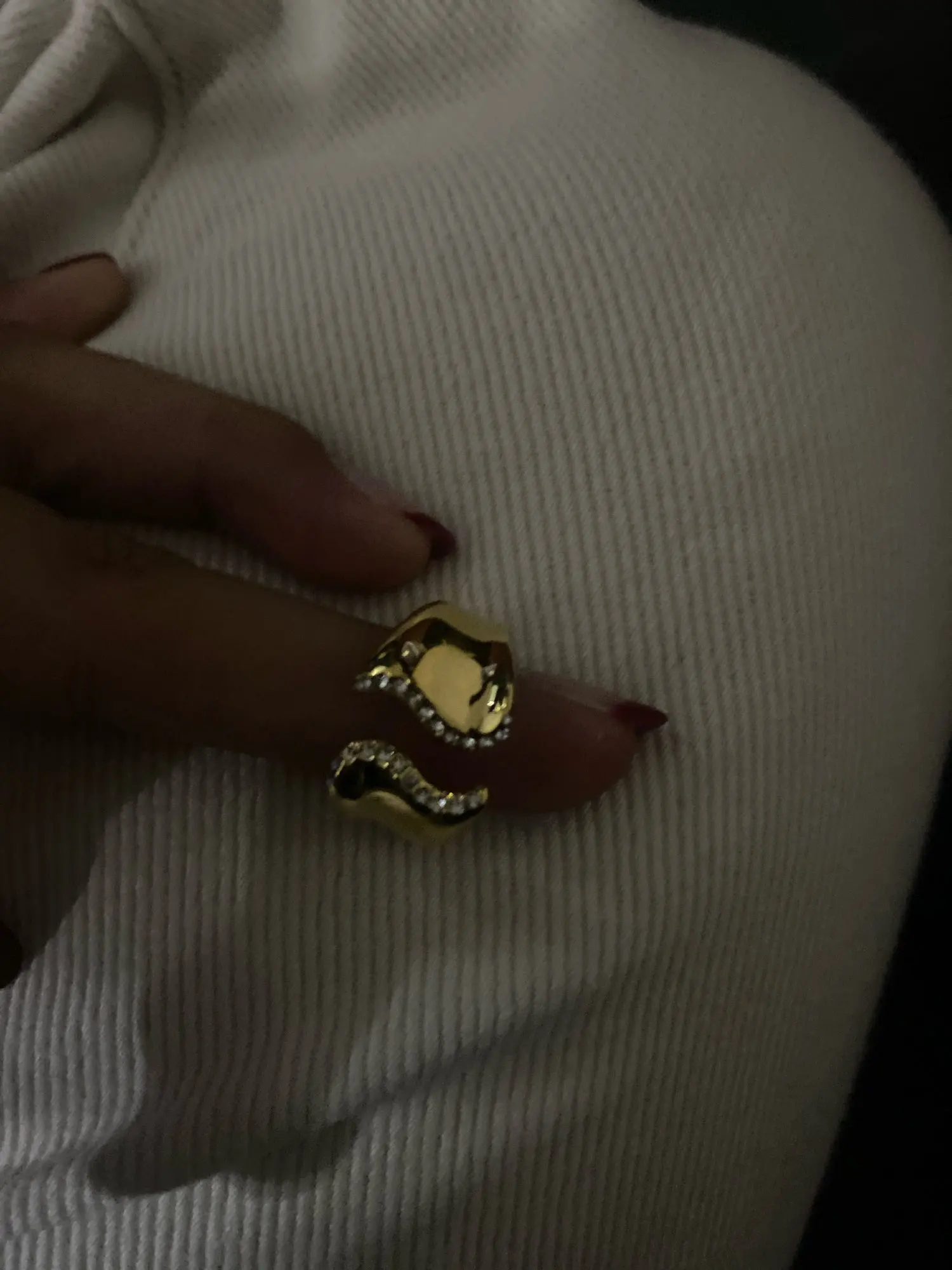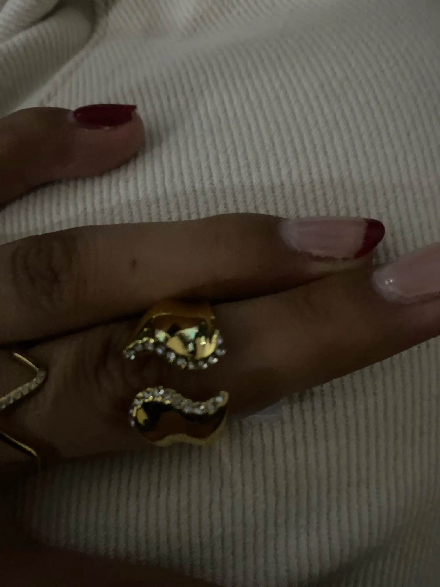 ✓ The open design wraps the finger in a smooth wave that feels like a modern gold ring.